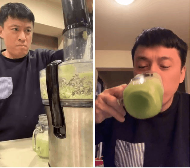 Anh Hai còn tự mình vào bếp chuẩn bị nguyên liệu và ép nước để uống mỗi ngày. Với công thức của anh, táo xanh, dưa chuột và ớt chuông xanh sẽ được ngâm muối rồi rửa sạch, sau đó cắt nhỏ để bỏ vào máy ép. Còn cần tây sẽ được loại bỏ phần lá và chỉ dùng phần bẹ để ép nhằm hạn chế vị hăng, đắng.