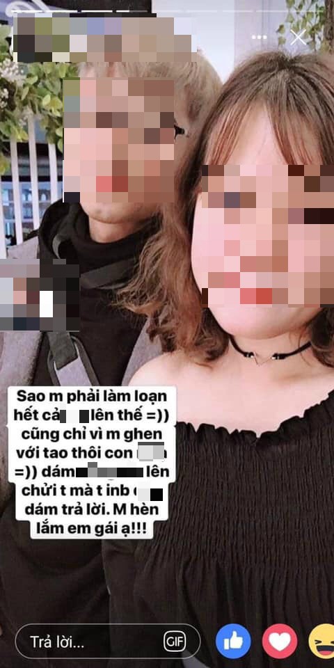 Đã làm chuyện trái với lương tâm, lại chẳng có chút ăn năn áy náy, cô bồ N.L.P ngang nhiên đăng tải công khai những tin nhắn mùi mẫn, ảnh tình tứ với bạn trai người khác lên story và tuyên bố: "Khi mày nghĩ anh ấy đang đi họp, đi nhậu với bạn…thì thực ra anh lại đang ở với tao.