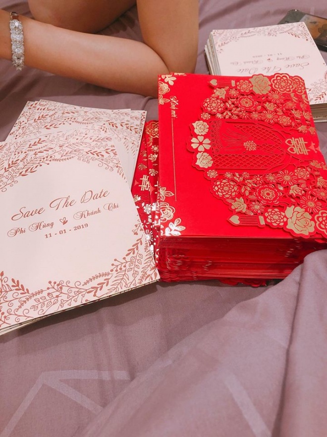 Nữ ca sĩ làm thiệp mừng một năm ngày cưới để gửi đến bạn bè.