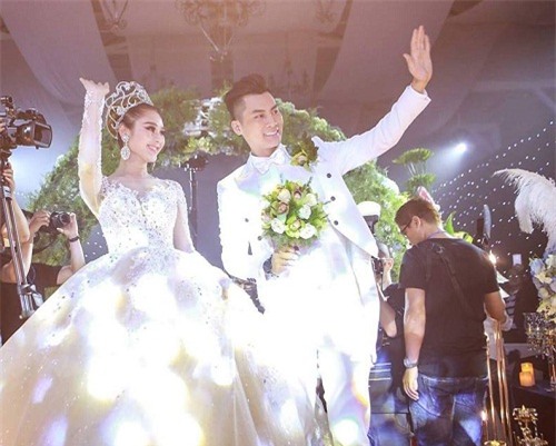 Bộ váy màu trắng tinh khôi cũng được nữ ca sĩ diện trong tiệc cưới hoành tráng.