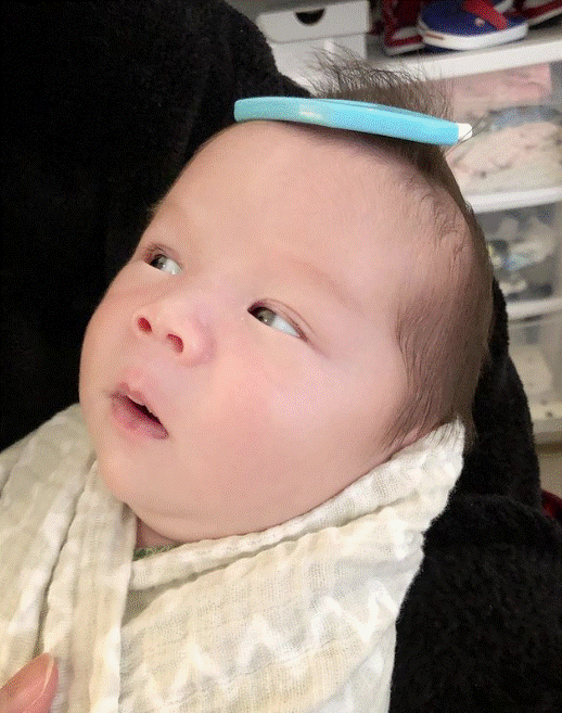 Nhìn cô nhóc Bay cười tít mắt, hàm chẳng có chiếc răng nào, ai cũng bật cười vì quá cute! Mẹ của Bay còn kê chiếc gối nhìn như mũ khá ngộ nghĩnh, ngắm Bay cười mà ai cũng muốn hớn hở theo.