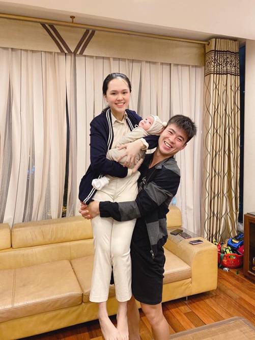 Trong bức ảnh mới nhất được Duy Mạnh đăng tải, cặp đôi có lẽ đã khéo léo khoe việc Quỳnh Anh đã giảm cân sau sinh thành công bằng một hành động cực tình cảm. Cụ thể, cầu thủ Duy Mạnh đã bế bổng cả hai mẹ con Quỳnh Anh và bé Ú trên tay một cách nhẹ nhàng.