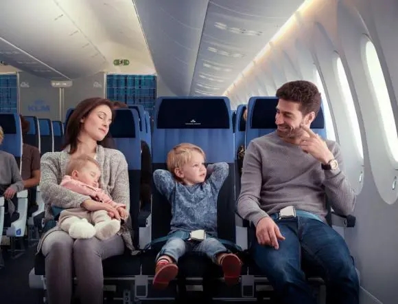 Trên máy bay, trẻ con khóc là điều không thể nào tránh khỏi do áp suất không khi thay đổi, trẻ sẽ bị đau màng nhĩ. Lúc này bạn có thể dùng núm vú giả để giảm bớt sự khó chịu cho em bé. Hay lúc mua vé máy bay hãy mua những thời điểm trẻ có thói quen ngủ. Đồng thời, nếu con bạn đã gây ảnh hưởng cho người khác thì hãy chân thành xin lỗi.
