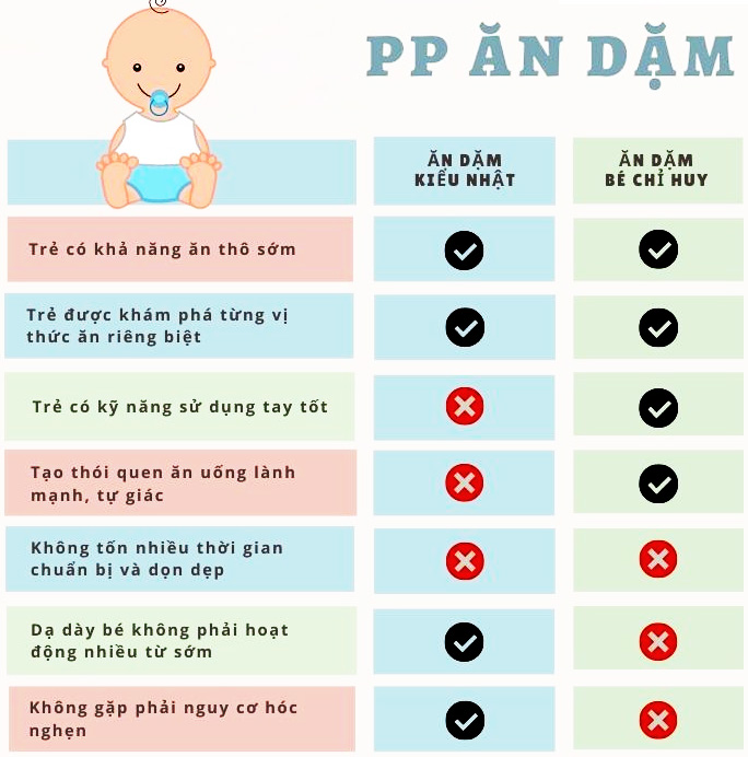 Trong đó mỗi kiểu ăn dặm sẽ có những ưu nhược điểm riêng đặc trưng như: