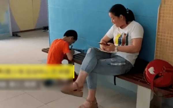 Hay 2 câu chuyện khác cũng đang được chia sẻ, bàn tán. Một cậu bé học lớp 4 ở Hàng Châu, trong kỳ nghỉ hè ngày nào cũng bị mẹ đưa đến lớp phụ đạo. Trong khoảng thời gian nghỉ giữa các tiết học, em phải để bài tập trên băng ghế để làm.
