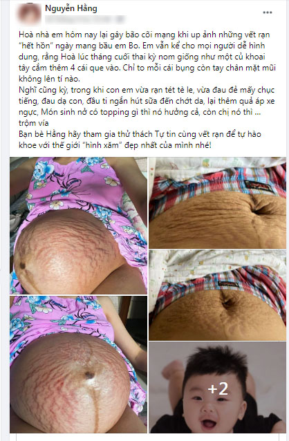 Và cũng như rất nhiều chia sẻ của em dành cho các mẹ chuẩn bị có, hoặc đang có em bé sẽ cẩn thận chăm sóc làn da bụng hơn để hạn chế rạn nhất có thể. Chúc tất cả chị em phụ nữ dù có hay không những khuyết điểm trên cơ thể sẽ vẫn luôn rạng ngời tự tin. Vì tự tin là đã đẹp lên 50% rồi ạ".