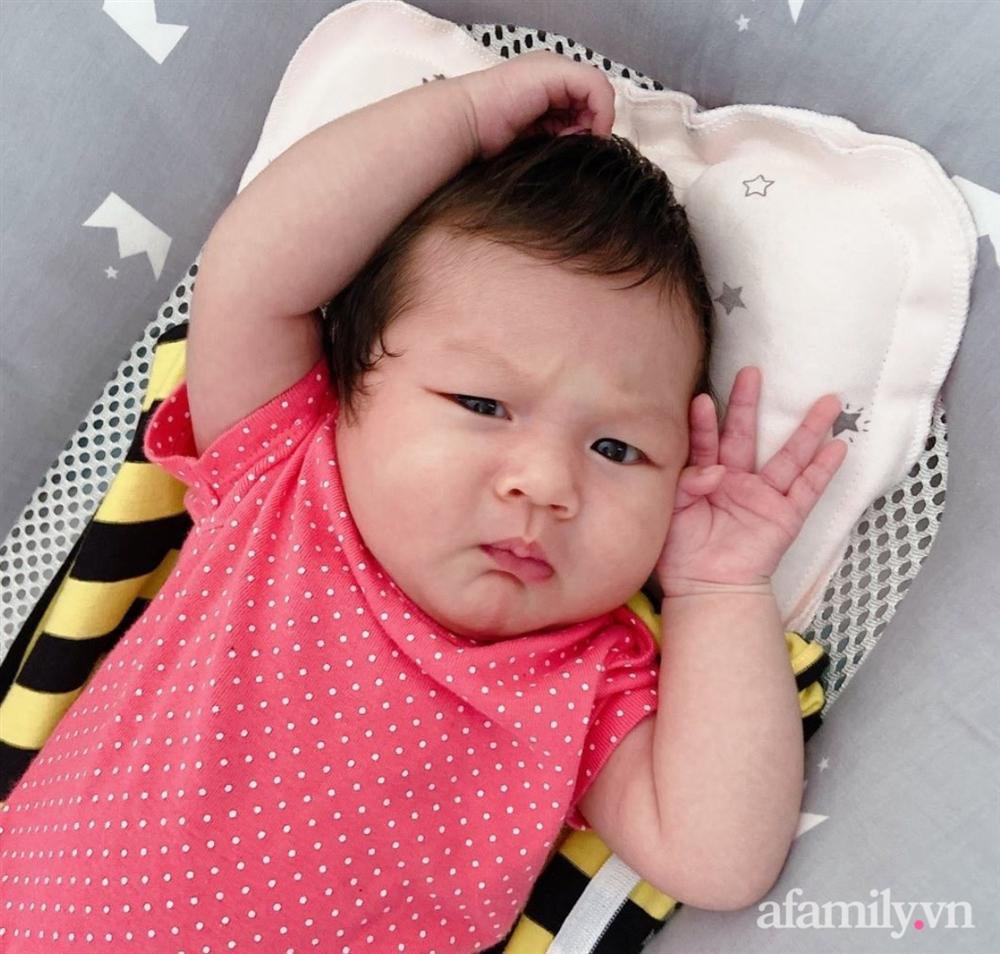 Khi Hạt Mưa chào đời có kiểu lườm giống mẹ y chang.