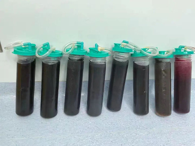 8 bình dịch được bác sĩ rút ra từ bụng của bé gái.