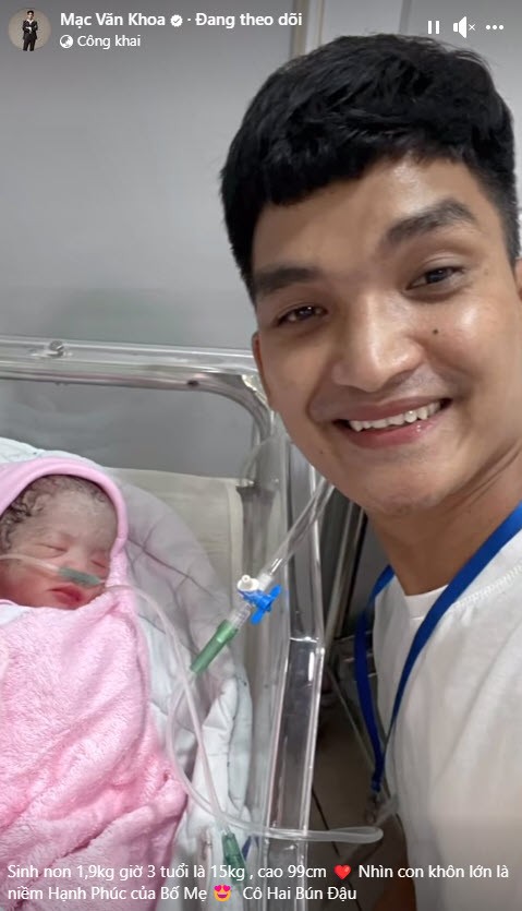 Cô bé sinh ra đời trước 1 tháng so với ngày dự tính của bác sĩ nên có cân nặng vô cùng ít ỏi chỉ 1,9kg. Thời điểm đó, ông bố trẻ Mạc Văn Khoa từng khóc cạn nước mắt vì thương vợ thương con. Thậm chí anh tạm hoãn mọi công việc để ở nhà chăm sóc con sinh non đến gầy rộc cả người.
