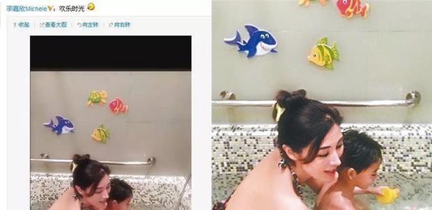 Trong các ảnh hàng ngày Lý Gia Hân đưa lên MXH có cả những bức ảnh cô tắm chung với con trai 8 tuổi của mình và một số bức ảnh hôn con trai cũng được đăng tải trên Weibo.