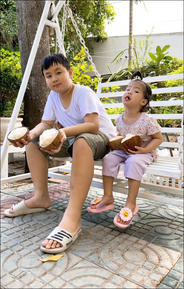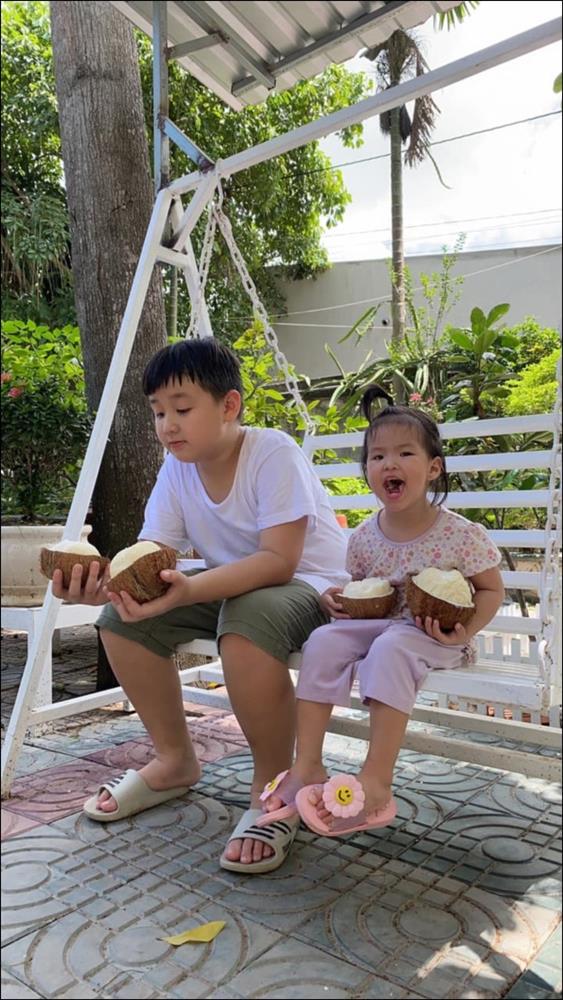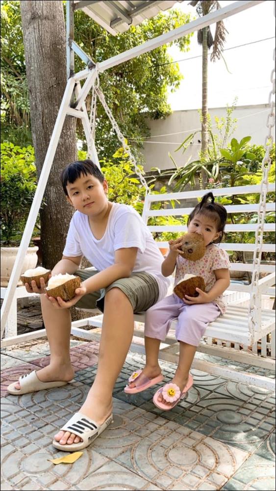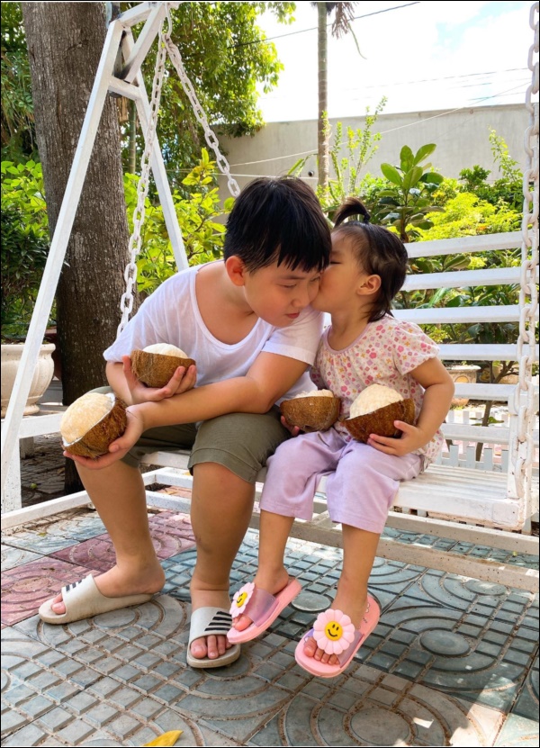 HÌnh ảnh gần đây nhất Lê Phương chia sẻ về 2 con. Cà Pháo càng lớn càng điển trai, cậu bé cũng ra dáng anh Hai rất cưng chiều cô em gái nhỏ.