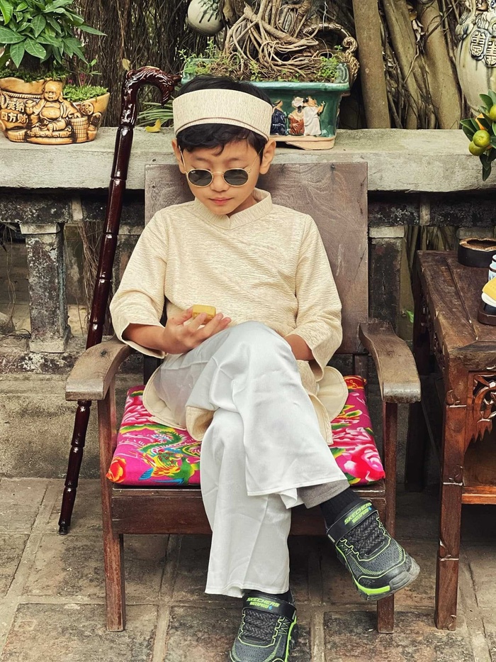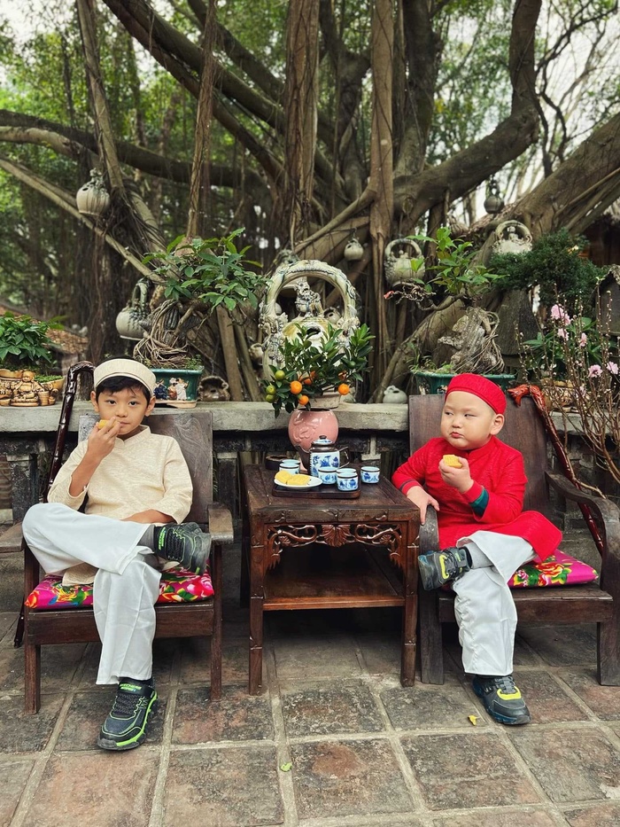 Trà My Idol khoe ảnh 2 con trai mặc áo dài chụp ảnh Tết