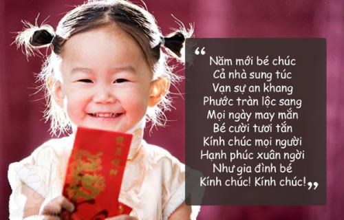 10. Năm mới bé chúc Cả nhà sung túc Vạn sự an khang Phúc tràn lộc sang Mọi ngày may mắn |