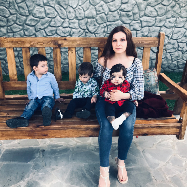 Bà mẹ 3 con nói: "Chúng tôi chỉ phát hiện ra Artyom bị bớt đen phủ gần kín người khi con được sinh ra. Lần đầu nhìn thấy con, tôi đã thật sự bị sốc. Các bác sĩ cho biết họ cũng chưa từng nhìn thấy ai có nhiều bớt đen như thế. Không chỉ vậy, ngay sau đó, bác sĩ còn nhận ra rằng Artyom bị nứt đốt sống. Tất cả mọi thứ đối với tôi lúc đó đều mờ mịt".
