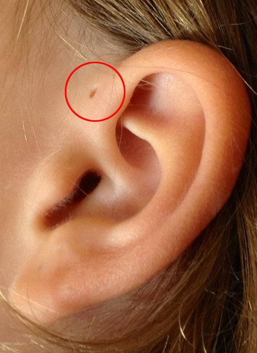 Lỗ nhỏ ở trước vành tai là một trong những dấu hiệu của rò luân nhĩ.