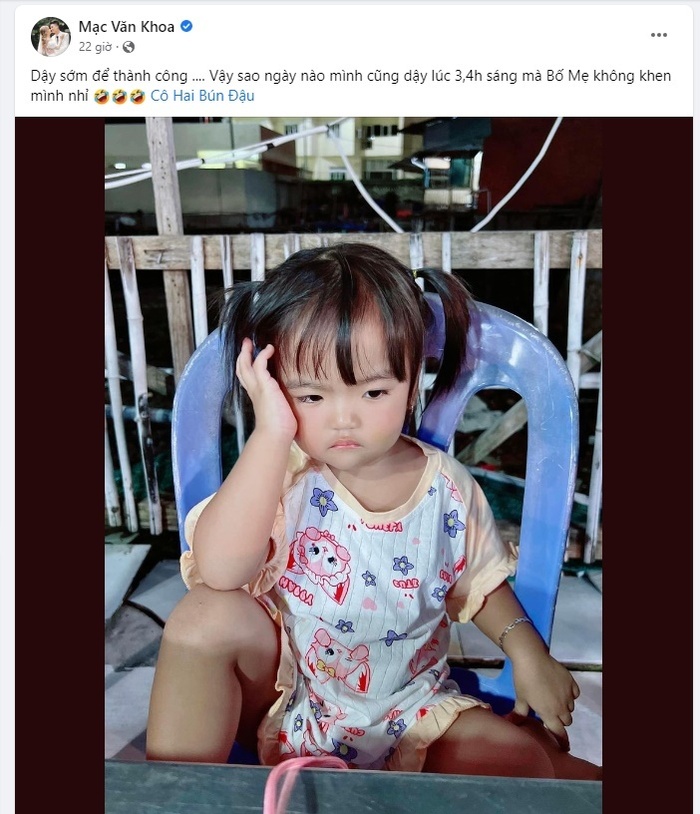Mạc Văn Khoa "khoe" con gái dậy sớm để thành công. Nhưng thời gian dậy của con lại là vào 3-4 giờ sáng