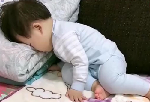 Ngày đầu cai sữa em bé một mực giữ nguyên tư thế này không ai thay đổi hay khuyên bảo được. Em bé như muốn nói với mọi người rằng khi không còn được bú mẹ nữa, khẩu phần ăn thay đổi thì bé sẽ trở nên suy sụp như thế đấy.