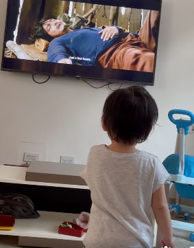 Công chúa nhỏ có sở thích xem phim bố đóng.