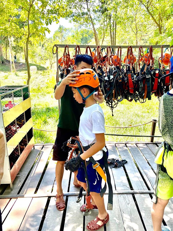 Trước khi tham gia các thử thách, Subeo được mang đồ bảo hiểm rất kỹ.