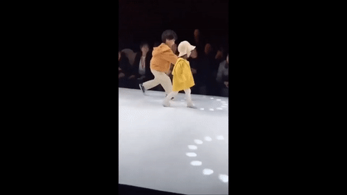 Tưởng như cô nhóc này sẽ chạy lon ton mãi không ngừng thì đúng lúc này, một cậu bé người mẫu khác từ cánh gà bước ra, dịu dàng nắm lấy tay cô bé và dắt theo mình cả lượt đi lẫn về. Hành động quá đỗi ga lăng này của em khiến khán giả phải ồ lên ngạc nhiên, còn cư dân mạng thì "quắn quéo" không ngừng.