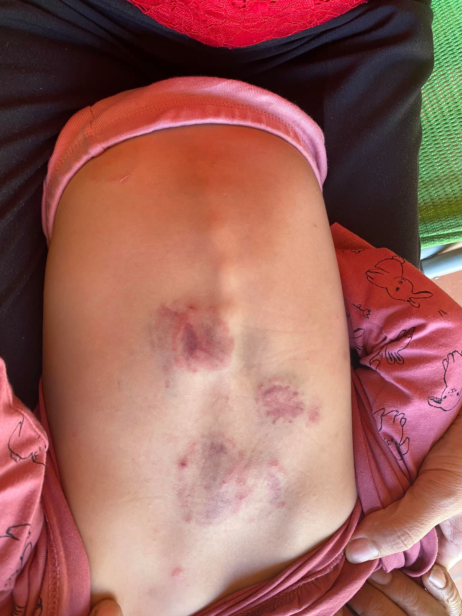 Bé gái bị bạn đánh bầm tím ai nhìn cũng xót xa.
