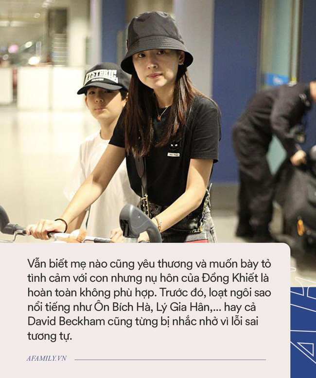 Bởi Đỉnh Đỉnh đã lớn và chuẩn bị dậy thì. Đây là lúc Đổng Khiết nên dạy con những bài học về giới tính, đồng thời chú ý mọi hành động trước mặt con. Vẫn biết mẹ nào cũng yêu thương và muốn bày tỏ tình cảm với con nhưng nụ hôn của Đồng Khiết là hoàn toàn không phù hợp. Trước đó, loạt ngôi sao nổi tiếng như Ôn Bích Hà, Lý Gia Hân,... hay cả David Beckham cũng từng bị nhắc nhở vì lỗi sai tương tự.