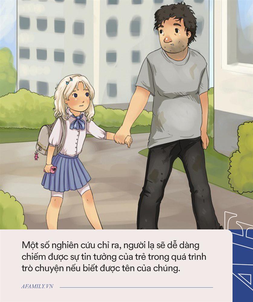 Một số nghiên cứu cũng chỉ ra, người lạ sẽ dễ dàng chiếm được sự tin tưởng của trẻ trong quá trình trò chuyện nếu biết được tên của chúng. Chính vì vậy, bố mẹ cần bỏ thói quen trên. Bên cạnh đó, để đề phòng con đi lạc, bố mẹ nên viết số điện thoại của gia đình lên đồ dùng của con. Chẳng hạn như: "Nếu trẻ bị lạc, hãy liên hệ số 09***".