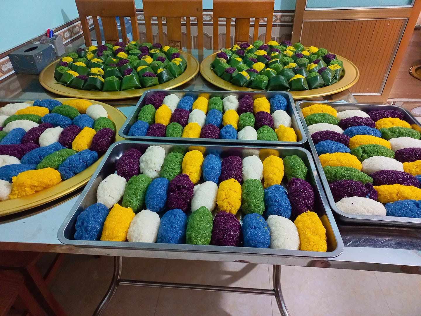 Xôi ngũ sắc được chị Hằng làm xong, chuẩn bị gói gửi đi cho khách các tỉnh.