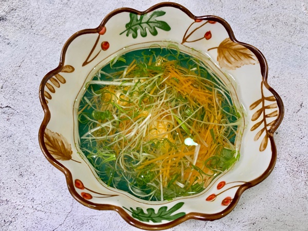 Bước 5: Đặt nồi hấp lên bếp, đun sôi nước rồi đặt đĩa cá vào xửng. Hấp cá trên lửa lớn trong khoảng 8-10 phút thì tắt bếp, giữ ấm trong nồi hấp khoảng 1 phút. Trong thời gian hấp cá thì bạn chẻ hành lá và thái cà rốt thành sợi mỏng rồi ngâm trong nước lạnh khoảng 2 phút.