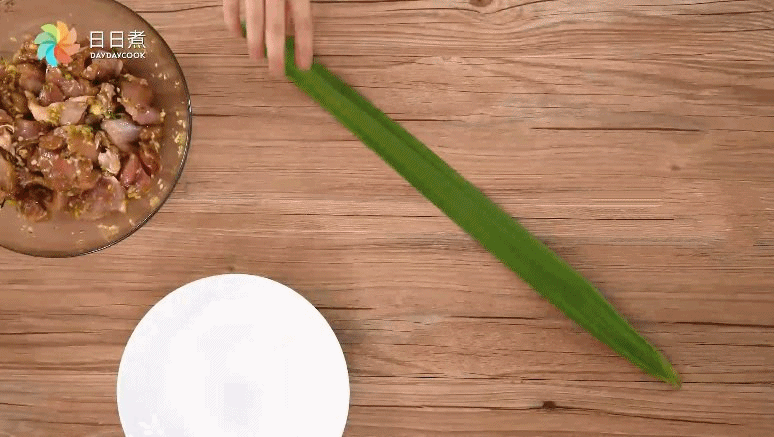 Gà sau khi ướp sẽ nhồi vào trong lá dứa đã gấp rồi gài kín lá dứa lại, cắt bỏ phần thừa của lá dứa.