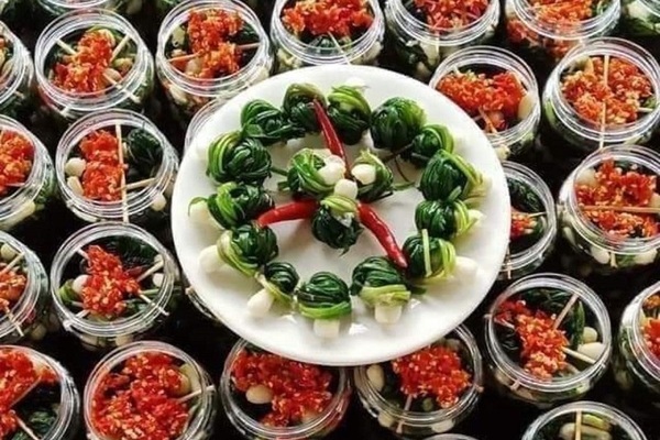 Kiệu lá cuốn ngâm mắm ớt là món ăn đặc trưng của miền quê Quảng Trị.