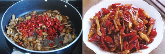 Cuối cùng thêm ớt thái nhỏ vào đảo chung cho quyện là được. Nếu bạn không ăn cay được nhiều thì có thể thay bằng sốt ớt hay một ít sốt ớt cùng với sốt cà.