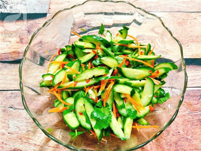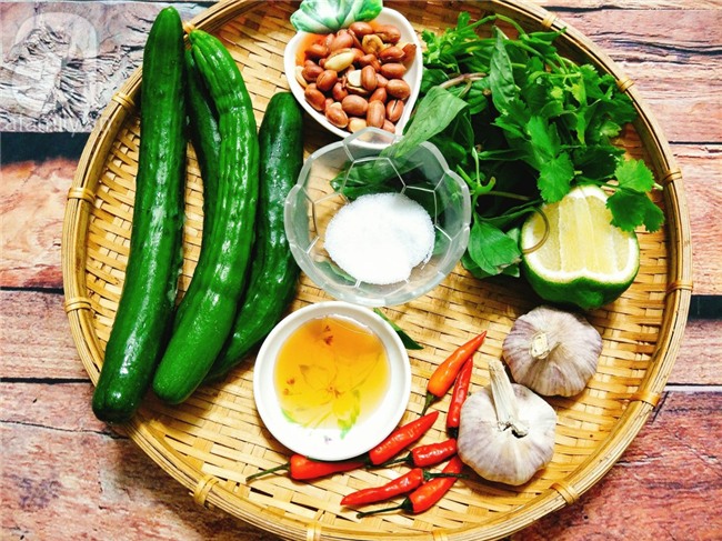 Cho nộm dưa chuột ra đĩa hoặc tô sau đó rắc lạc đã giã dập lên là có thể thưởng thức rồi.