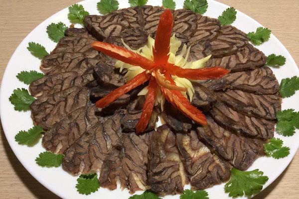 - Bì lợn cho vào luộc nhừ, thái miếng rồi cho vào xay nhuyễn sau đó cho gan lợn đã xào vào xay cùng rồi múc ra tô.