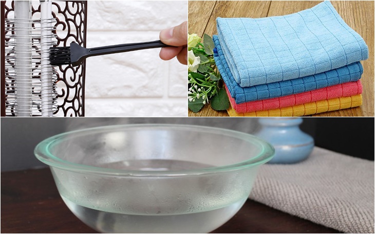 Chuẩn bị khăn mềm, bàn chải và chậu nước.