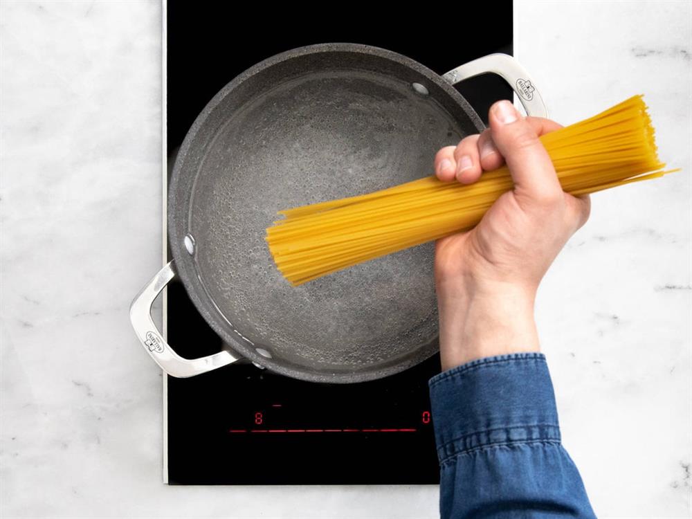 Khi nước sôi, nêm muối và luộc mì cho chín.