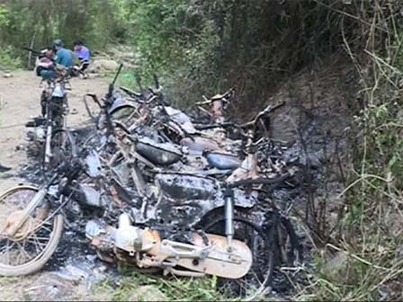 Trong lúc đoàn kiểm tra đang làm nhiệm vụ thì bị các đối tượng phá rừng gom 9 xe máy lại rồi đốt cháy toàn bộ.