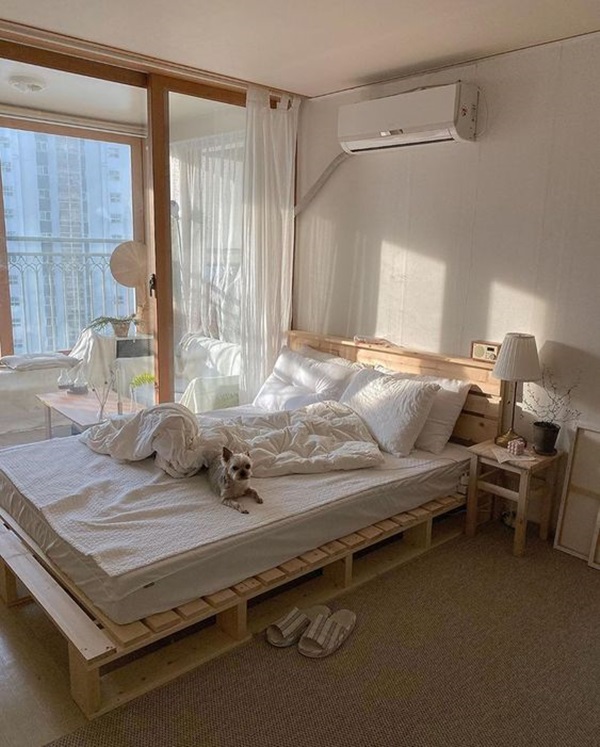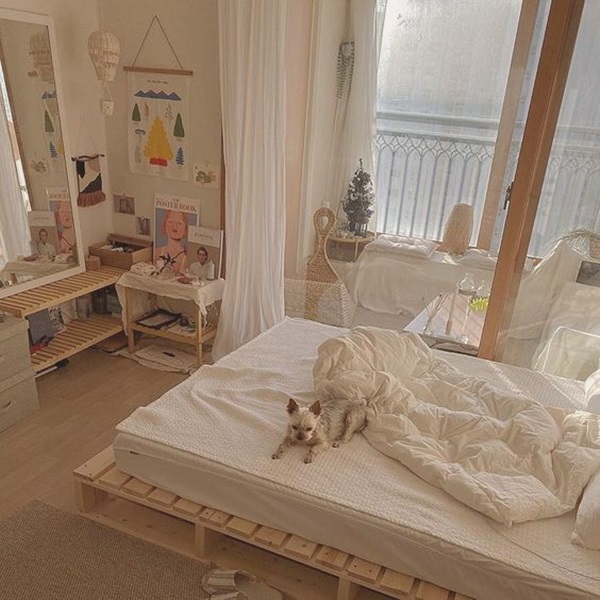 Quy mô của các căn hộ ở Hàn Quốc thường tương đối nhỏ. Vì vậy, điều quan trọng là giữ cho các căn phòng trông rộng rãi dù sử dụng nhiều loại đồ nội thất khác nhau. Giường là vật dụng chính cần phải có ở bất cứ căn hộ nào. Để căn hộ trông rộng rãi thì việc lựa chọn khung giường rất đáng lưu ý. Các căn hộ kiểu Hàn Quốc thường sử dụng khung giường thấp. Ngoài ra, khung giường bằng gỗ màu tươi sáng cũng tạo hiệu ứng bầu không khí ấm áp, thoải mái cho chủ nhân, giúp bạn nhanh chóng chìm vào giấc ngủ yên bình.