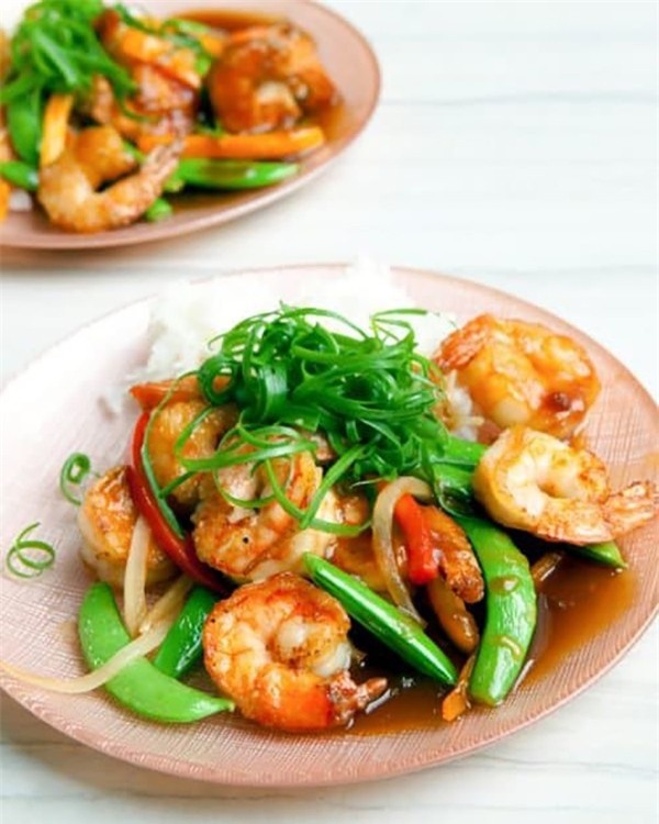 Đổ tôm xào ra đĩa, rắc thêm chút hành cho đẹp mắt. Tôm xào rau củ đậm đà, phần thịt tôm săn chắc mà lại ngọt thơm, nước sốt quyện đều từng nguyên liệu vô cùng hấp dẫn. Món này ăn nóng cùng cơm trắng đã miệng lắm đấy!
