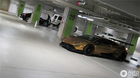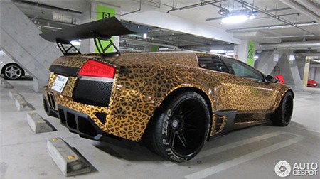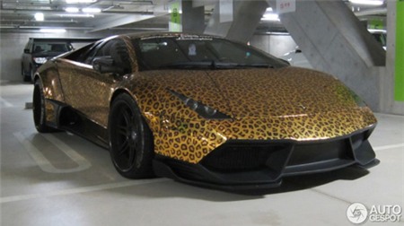 Siêu xe Lamborghini Murcielago được chộp lại trong một garage để xe với lớp vỏ rất đặc biệt, khác hẳn với những màu sắc thời trang bóng bẩy hoặc những màu sơn mờ huyền bí. Nước sơn màu lông báo mang lại cho siêu xe nước Ý cái nhìn rất độc đáo.