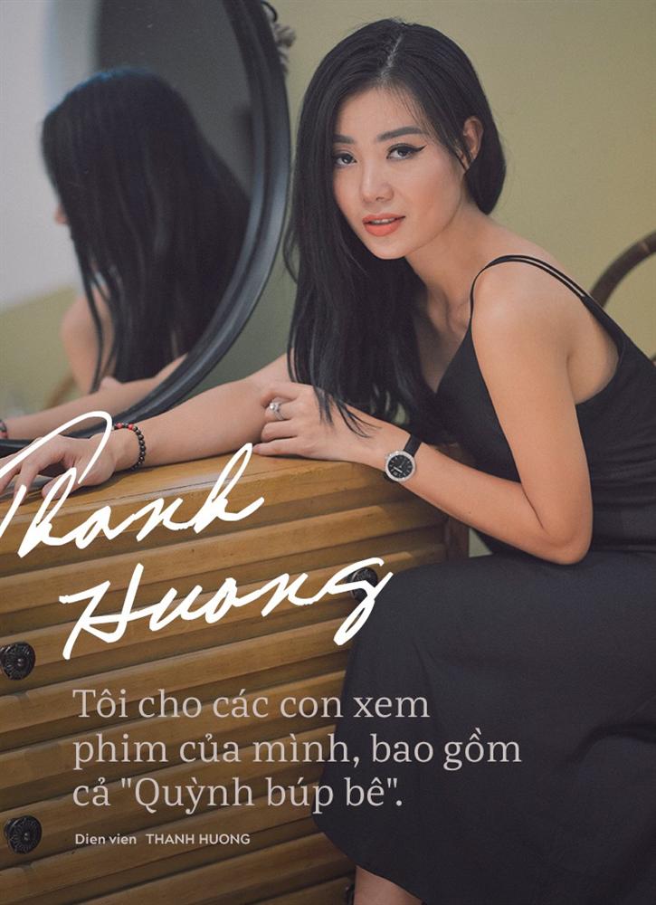 Có lẽ tôi khá cởi mở nên cho các con xem phim của mình, bao gồm cả "Quỳnh búp bê". Tôi ngồi xem cùng con và giải thích cho con, rằng nhân vật này hành động như thế là tốt hay xấu, rồi rút ra các bài học nếu sau này con gặp tình huống đó ngoài đời. Hai con gái của tôi có lẽ mang gen nghệ thuật của mẹ nên rất nhạy cảm. Các cháu thường xuyên xem hình mẹ trên báo và hiểu rất rõ đây là công việc của mẹ.