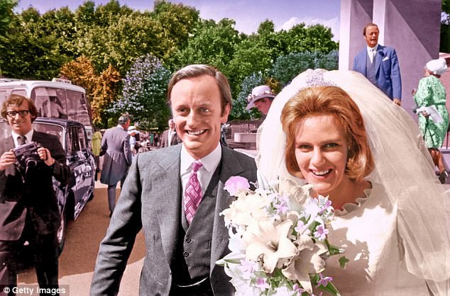 Bà Camilla trong đám cưới với người chồng đầu tiên.