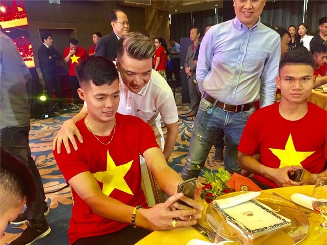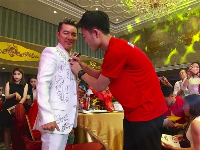 Đây là lần thứ 2, Đàm Vĩnh Hưng được tiếp xúc với các chàng trai này. Từ trước đến nay, ai cũng thấy khoảnh khắc các fan vây kín "ông hoàng nhạc Việt" để xin chữ ký. Tuy nhiên, lần này lại chính nam ca sĩ xin chữ ký của đội tuyển U23.