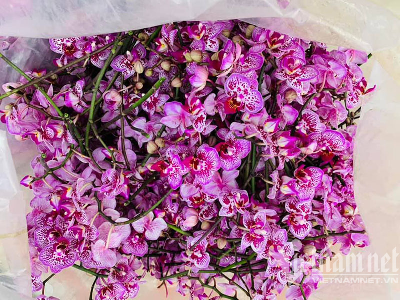 Lan hồ điệp cắt cành cũng về gần 300 cành, giá 15.000 đồng/cành. Chị chỉ đăng bán buổi sáng khách đã chốt mua hết sạch.