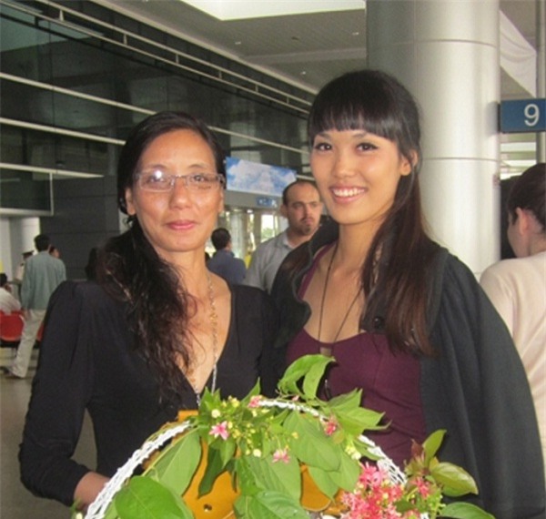 Lan Khuê mộc mạc bên mẹ. Có thể thấy ngay từ thời thiếu nữ, Lan Khuê sớm