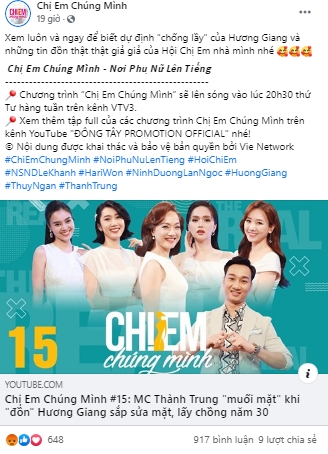 Trước phản ứng ngày càng dữ dội của khán giả, chương trình Chị em chúng mình mà Hương Giang đang tham gia với vai trò host cố định cũng vấp phải làn sóng tẩy chay. Trong bài viết mới nhất của chương trình, nhiều khán giả đã không ngại bày tỏ sẽ không xem Chị em chúng mình vì Hương Giang rao giảng đạo lý, dạy đời người khác quá nhiều và có nhiều phát ngôn bất nhất với những gì mà cô từng nói trước đây khiến khán giả cho rằng nàng Hậu quá lươn lẹo.