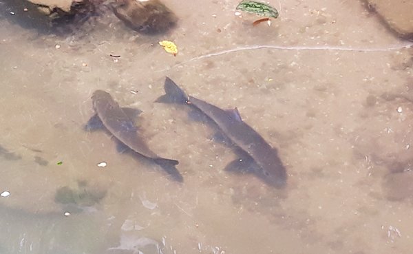 | 2 con cá hoa được ông Đào A Son, xã Bản Hồ nuôi nhiều năm trong ao nhà. |
