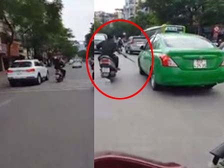 Đoạn clip hơn 3 phút ghi lại cảnh một người đàn ông lái xe máy, một tay cầm mã tấu liên tục chém rụng gương nhiều xe hơi đang lưu thông trên đường phố Sài Gòn.