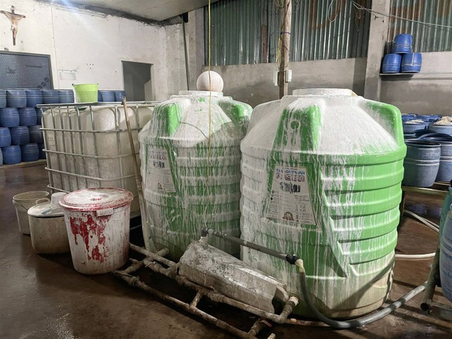 Hóa chất được pha chế trong những thùng lớn. Ảnh: Tống Huệ |