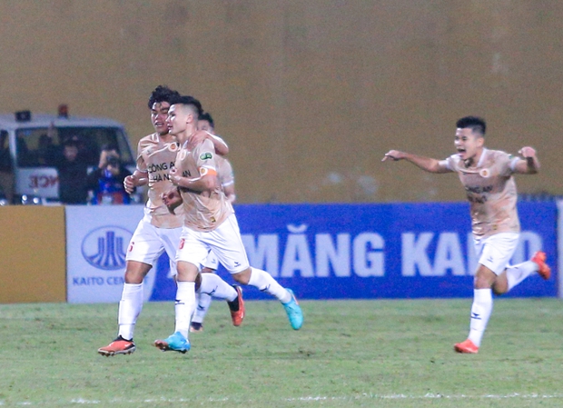 Bàn thắng của Quang Hải đến từ tình huống phút 90+2. Quang Hải vô lê bật hậu vệ Hà Tĩnh, anh tung cú vuốt bóng chân trái khác đánh bại thủ môn Thanh Tùng (Hà Tĩnh)